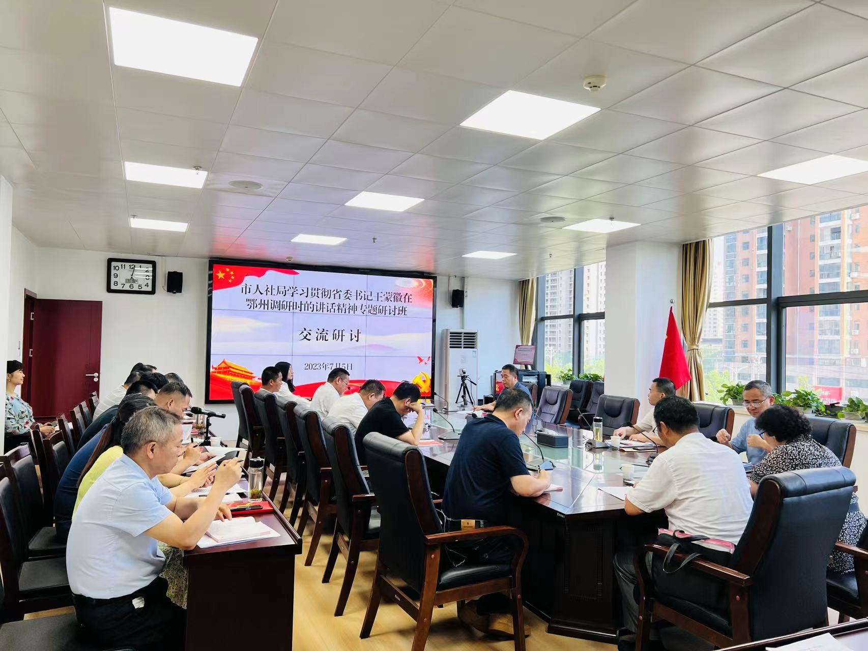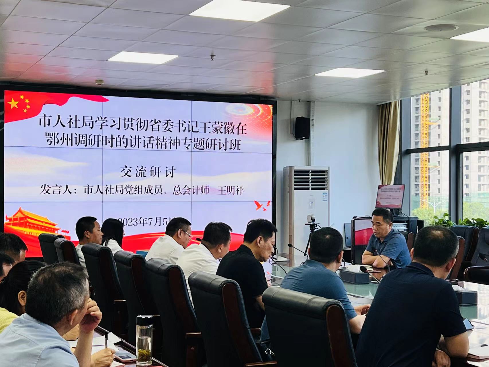 7月5日,市人社局举行学习贯彻省委书记王蒙徽在鄂州调研时的讲话精神专题研讨班(第三期),赵俊、姜练军、胡轲等5名同志作交流发言,局党组成员、总会计师王明祥主持会议并进行总结发言。