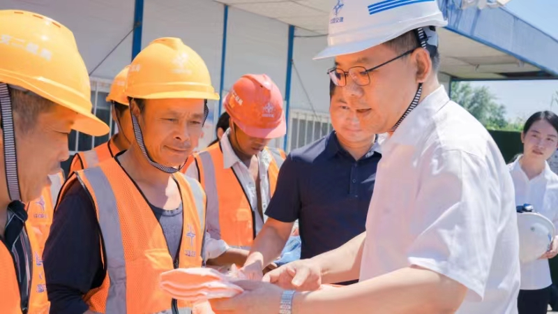 7月25日,鄂州市人社局党组书记、局长王惠锋带队前往燕矶长江大桥工地,开展“夏季送清凉”慰问宣讲活动,为冒着酷暑奋战在项目建设一线的劳动者送上“清凉礼包”和“政策关怀”。