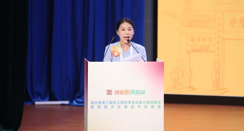 这是我市金牌选手——彭诗琪作为全省1600多名选手唯一代表在台上发言,十六岁的她在湖北省第三届技工院校学生技能大赛暨第四届教师职业能力大赛健康和社会照护赛项夺得金牌,激动得流下眼泪。这也是我市技能人才培育工作的成功剪影。