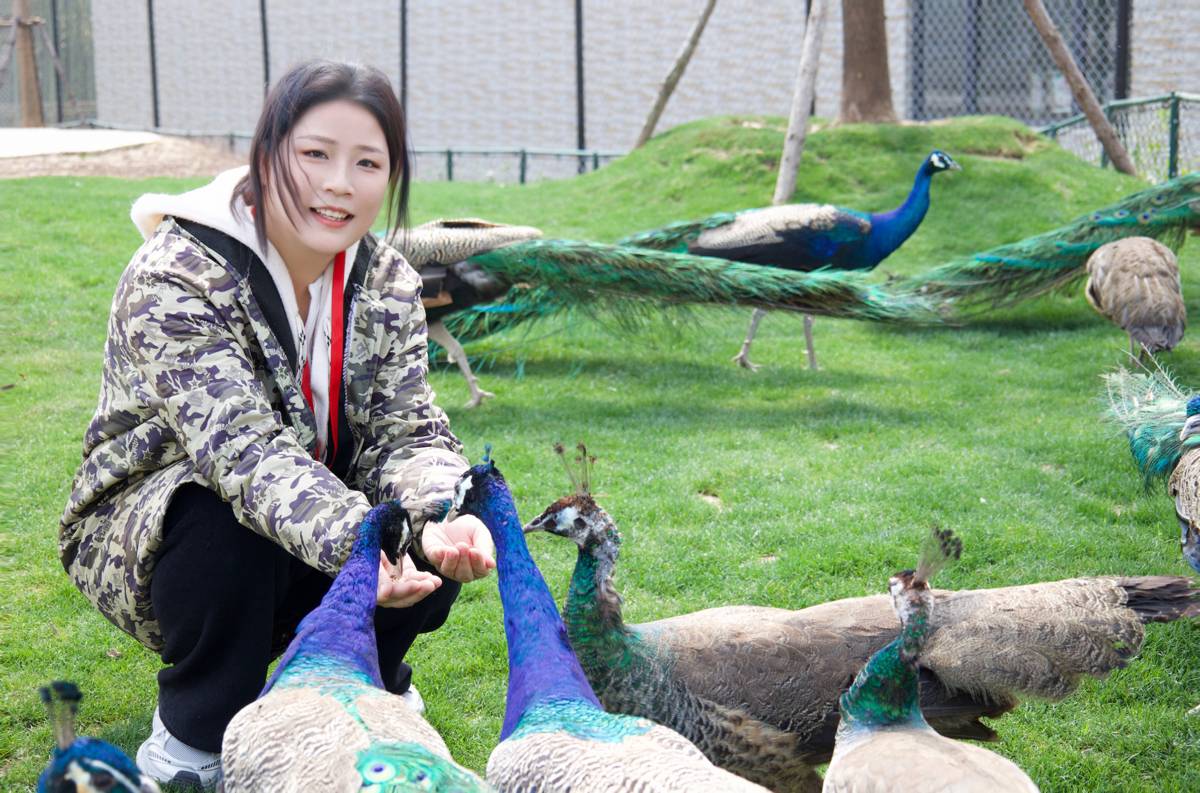 吴蓓是鄂州泽林镇人,曾辗转上海、重庆等地从事海兽饲养工作,积累了丰富的讲解和主持经验。当得知家乡要建大型野生动物园时,她第一时间报名,凭借扎实的专业经验成功应聘为领班饲养员,圆了回家就业的梦。如今,她正带领团队熟悉孔雀、鸸鹋等珍稀动物的习性,梳理饲养规范,为园区开园做足准备。