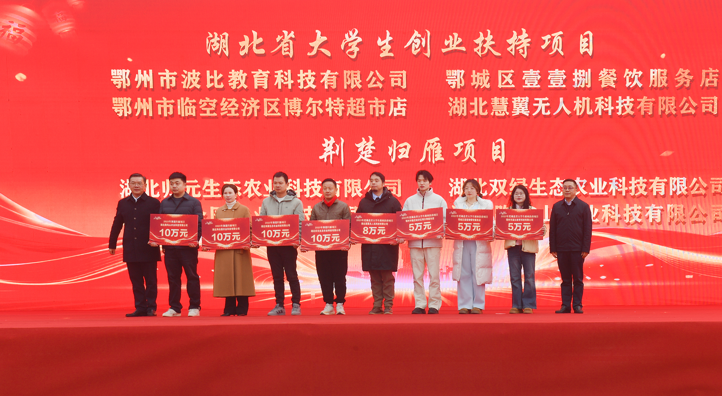 启动仪式上,同步举行了隆重的颁奖授牌仪式,省人社厅党组成员、副厅长马丽,市人社局党组书记、局长王惠锋等领导为2025年度湖北省大学生创业扶持项目、荆楚归雁项目、荆楚返乡创业特色街区、湖北省技能大师工作室、省级高技能人才培训基地以及湖北省十大劳务品牌领军企业等先进单位代表颁奖授牌。这些获奖单位在创业带动就业、技能人才培养、产业就业融合等方面成效显著,充分展现了鄂州市创新创业工作的丰硕成果,为湖北高质量发展提供了坚实的人才支撑。