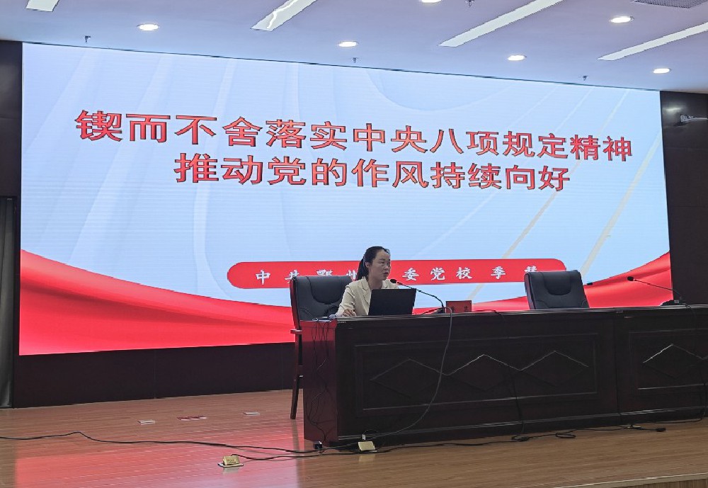 为深入贯彻中央八项规定精神,进一步加强作风建设,推动人社事业高质量发展,4月22日,鄂州市人社局召开深入贯彻中央八项规定精神学习教育专题辅导报告会暨警示教育会。市委宣讲团成员、市委党校季慧教授作深入贯彻中央八项规定精神学习教育辅导报告。市人社局党组成员、副局长叶卫平主持会议,全系统党员干部参加。